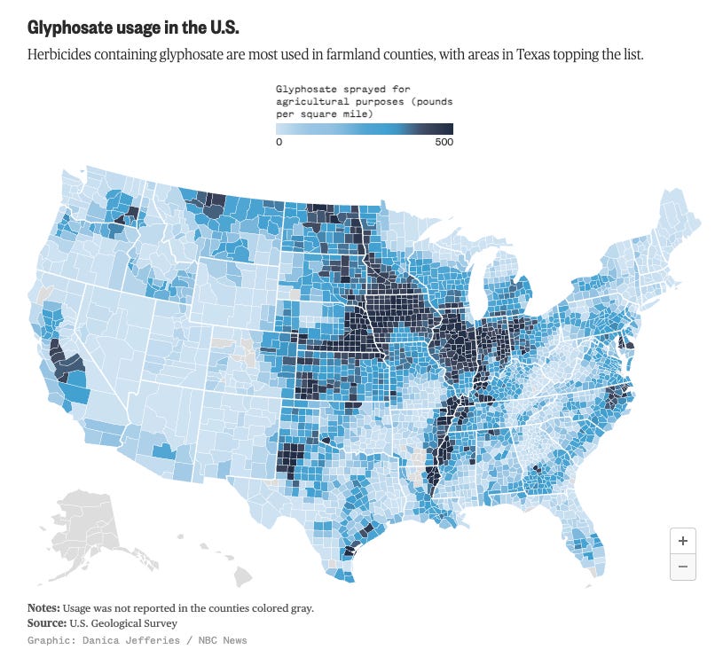 Glyphosate, the most commonly used pesticide since 2001, is heavily and routinely used throughout the United States. Should we be worried about the (relatively) small amounts of glyphosate that have made it to tons of the foods in our food supply?